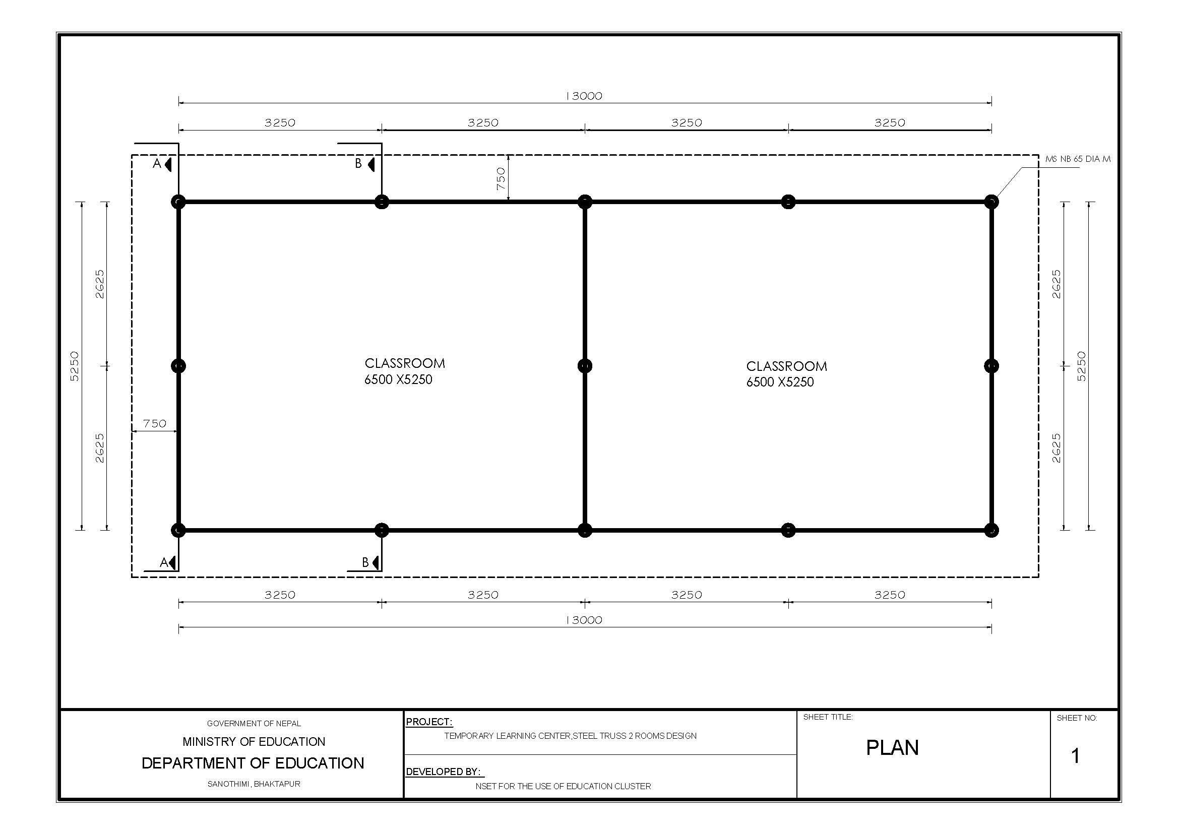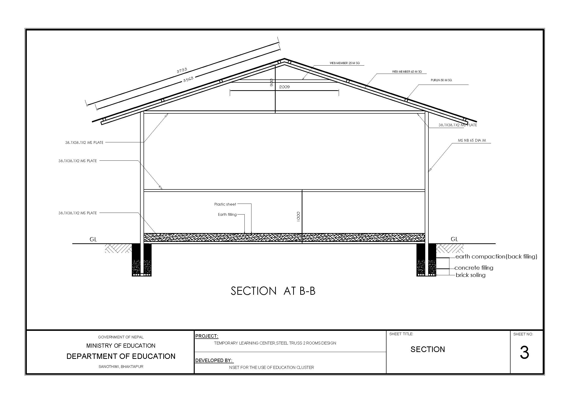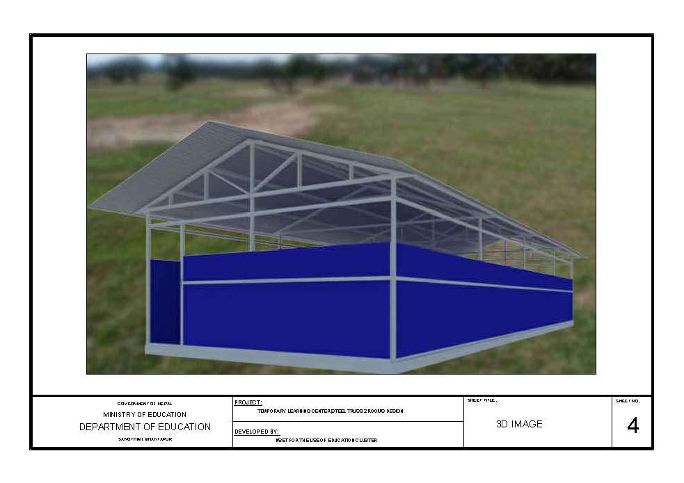 Il DDRC (District Disaster Relief Committee) ha anche fornito il disegno tecnico per eseguire le strutture semi permanenti a regola d’arte secondo le direttive dell’ingegnere governativo del Dipartimento di Istruzione facente capo al Ministero dell’Istruzione Pubblica. Le strutture sono state disegnate con il fine di poter essere rese, in un secondo momento, permanenti. Come si può notare dalle foto in calce al presente documento, infatti, le pareti sono costituite da semplici incerate, successivamente sostitubili con materiale più duraturo.