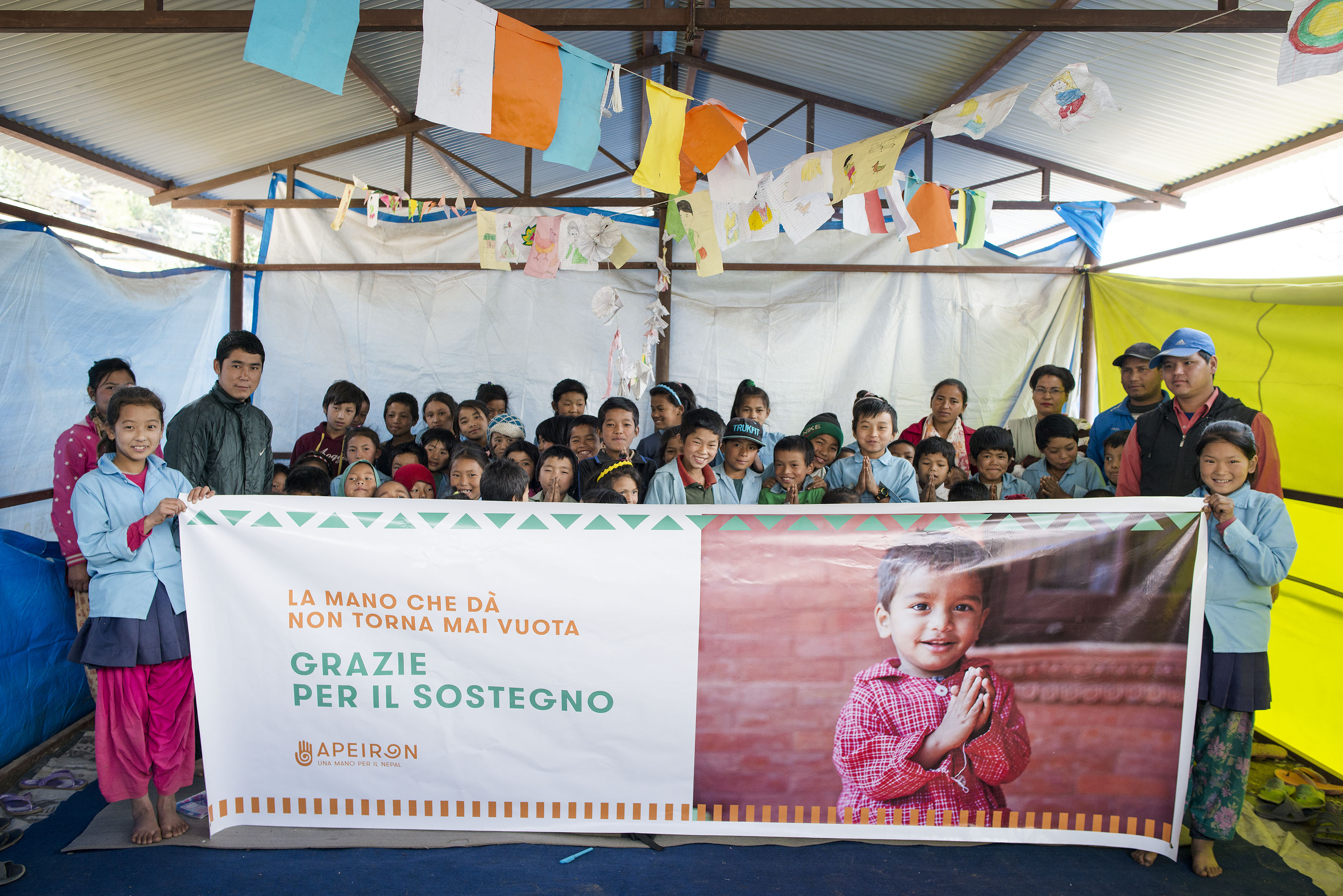 Il sole ci investe, ma ci scalda poco, il vento imperterrito ci spazza. Siamo contenti e non ci sembra vero di essere qui. Non abbiamo bisogno di molte parole, gli sguardi luminosi e i sorrisi bastano a farci capire cosa proviamo. La bandiera del Nepal svetta anche questa volta!